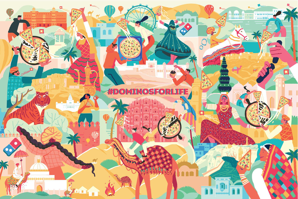The concept was to build an art wall with city-specific visuals that highlighted the blend of Dominos and city's significant elements and rich culture.